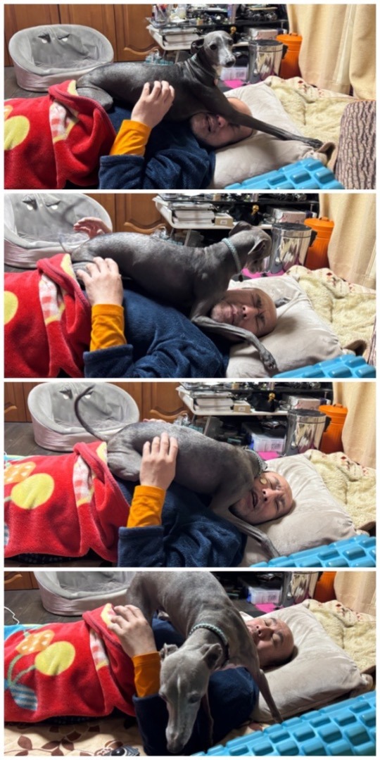 4時頃朝ごはん食べた後、ギンちゃん朝散歩行こうってジィジを起こすみたい