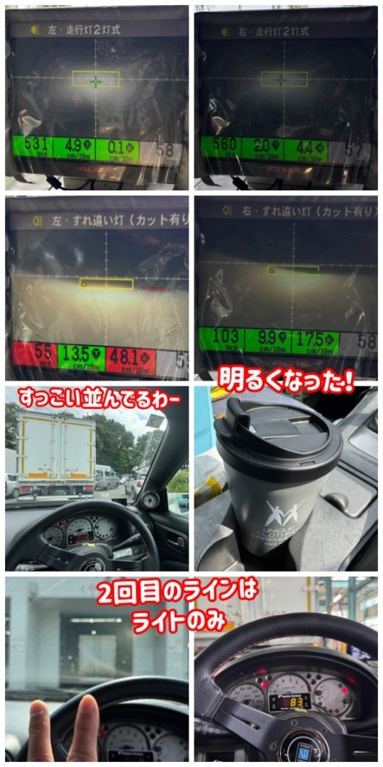 実際にこれで走ると下向きすぎなので、車検後にまた調整してもらうね